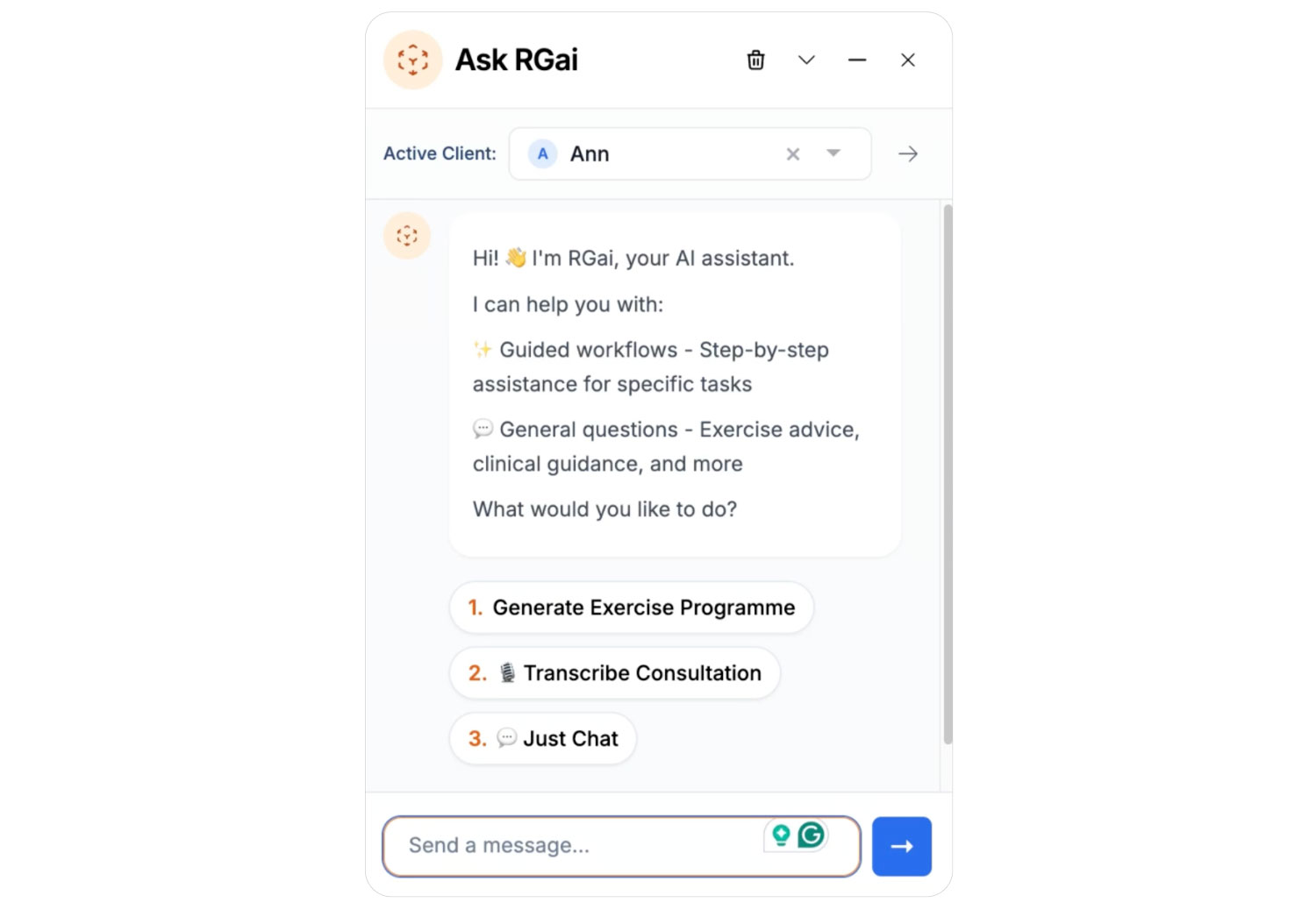 All new features are available within Rehab Guru. To use the AI-powered tools, you will need an appropriate Rehab Guru AI add-on. Options include RG AI Plus, which focuses on treatment note transcription and works alongside the Treatment Notes add-on. Other packages provide wider support for programme generation and clinical guidance, allowing you to select the level that suits your practice.